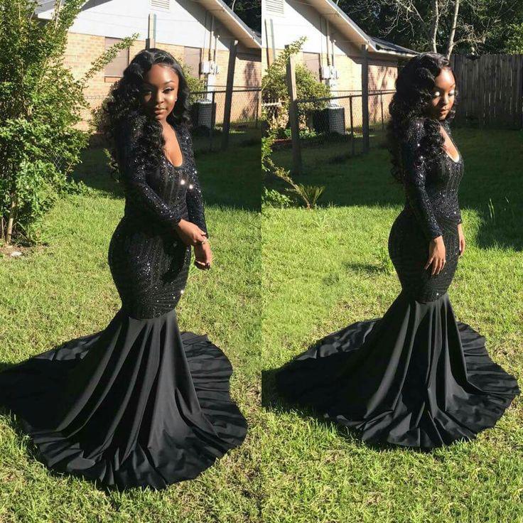 Bling Bling Black Sequined Prom Dresses Long Sleeves Plunging V Neck Mermaid Evening Gowns Plus Size Chiffon Prom Formal Dresses
