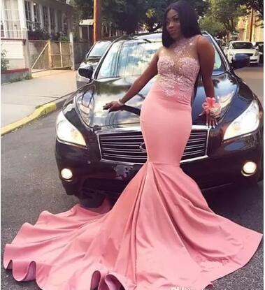 Mermaid Prom Dresses Long 2020 Sexy Sheer Bust Pink Formal Evening Gowns High Neck Lace Cocktail Party Dress Sweet 16 Gown
