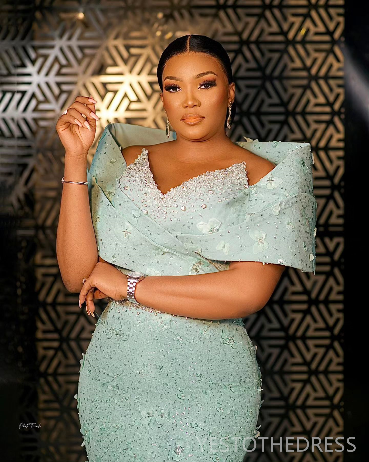 Mint Plus Size Prom Dress Mermaid Promdress Evening Formal Gowns Portrait Beaded Rhinestones Crystals 3D Flowers Lace Birthday Dress