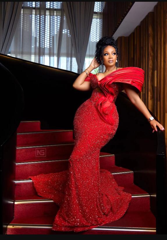 Plus Size Red Mermaid Prom Dresses For Special Occasion Sequined Crystals Beaded Evening Formal Party Second Reception Birthday