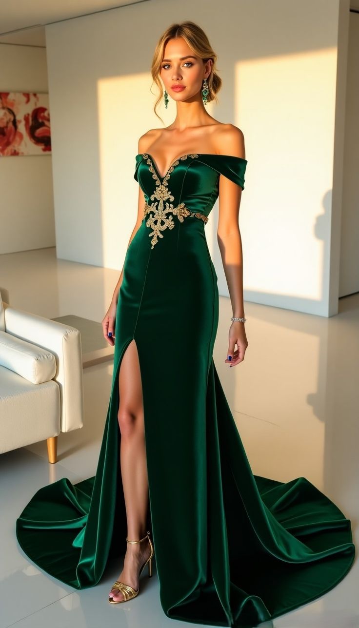 Emerald Green Prom Dresses Sheath Lace Appliques Evening Gowns Formal Party Gowns