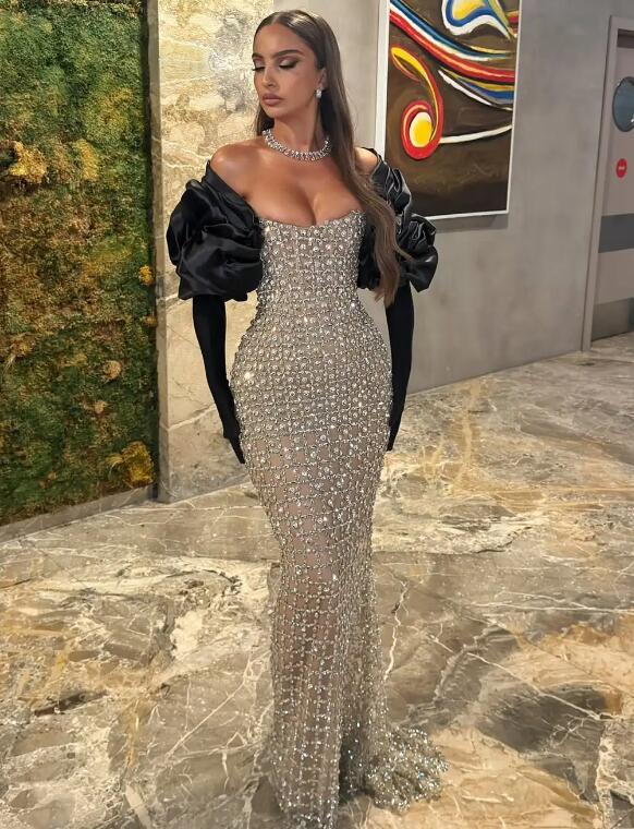 Luxury Sparkly Sexy Black Girl Prom Dresses Long Sleeves Strapless Beaded Diamonds Mermaid Women Evening Dress Customized