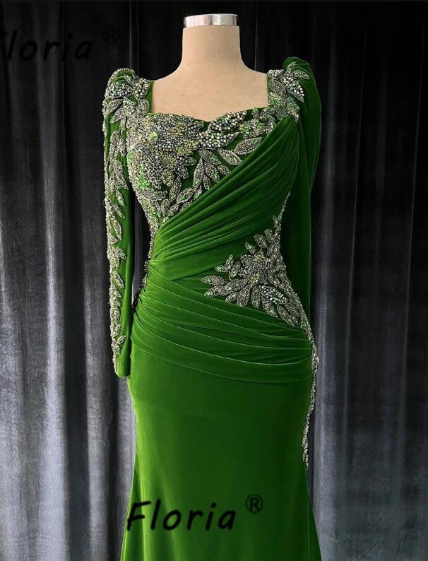 Green Mermaid Beading Crystals Prom Dress Evening Formal Gown