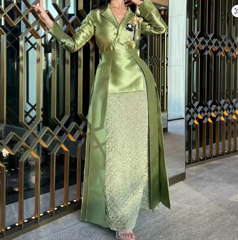 CustomizedLuxury Jersey A-Line Flowers Evening Dress High Quality Floor Length Long Sleeves V-Neck