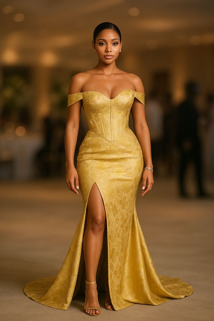 Yellow Mermaid Lace African Girls Prom Dress Evening Formal Gown Birthday Party Dress