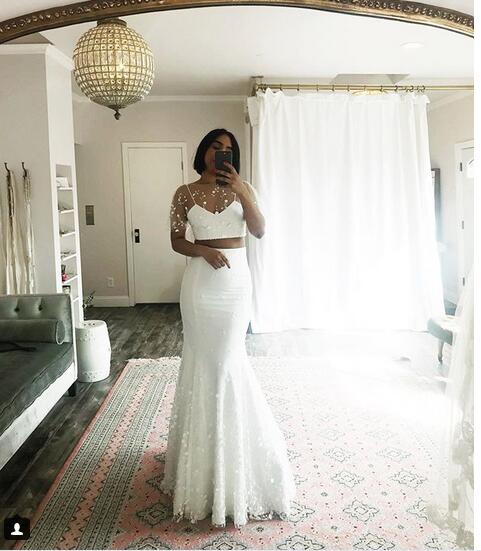 Simple Beach Wedding Dresses Boho Bridal Gowns Two Pieces Mermaid Delicate Lace Wedding Dresses