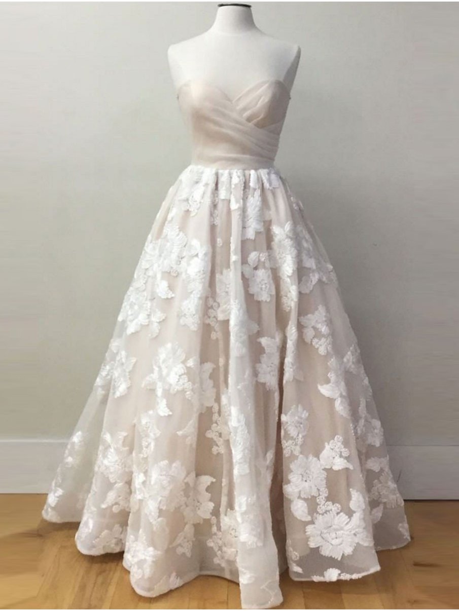 Sexy Wedding Dresses Sweetheart Floor-length Organza Lace Bridal Gowns