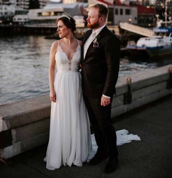 Simple A Line Chiffon Bohemian Wedding Dresses Spaghetti Straps Delicate Lace Backless Bridal Gowns