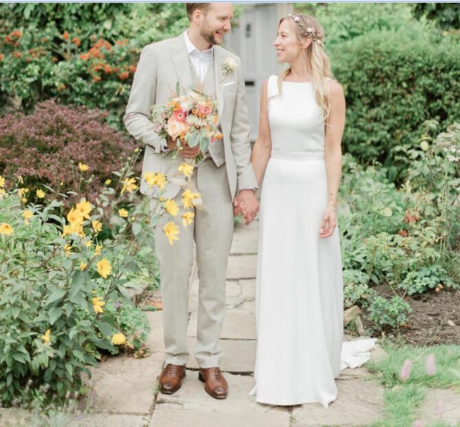 Romantic Mermaid Garden Wedding Dresses Crew Neck Sleeveless Sash Bridal Gowns