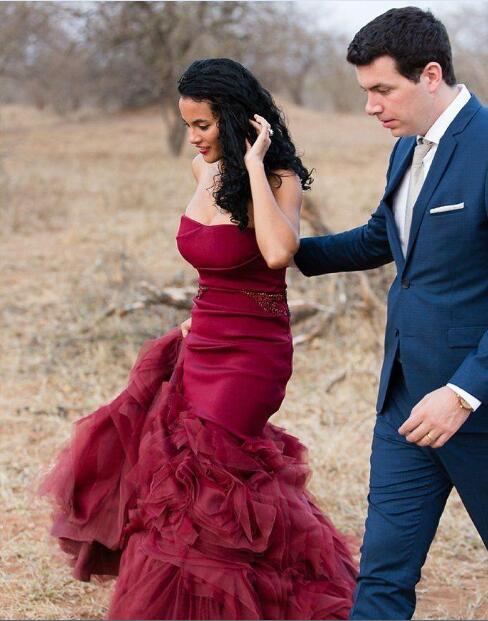 Burgundy Mermaid Wedding Dresses Wine Red Strapless Backless Long Bridal Party Gowns Plus Size vestidos de novia sirena