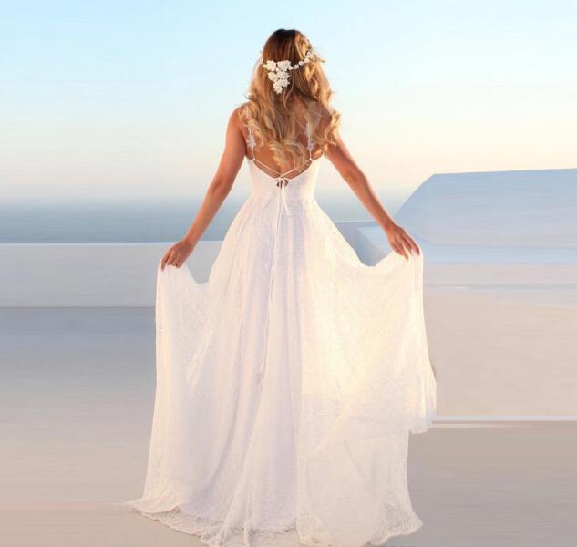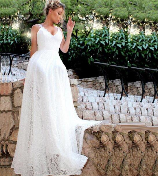 Lace A Line Wedding Dresses 2019 V Neck Sleeveless Bridal Dresses China Sexy Backless Wedding Party Gowns