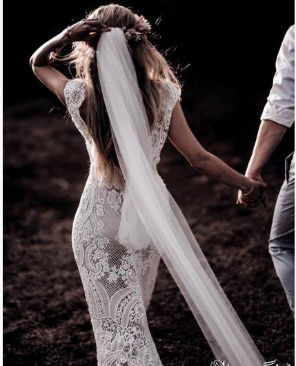 Vintage Lace Rustic Wedding Dresses Cap Sleeve Sheath Boho Wedding Dress