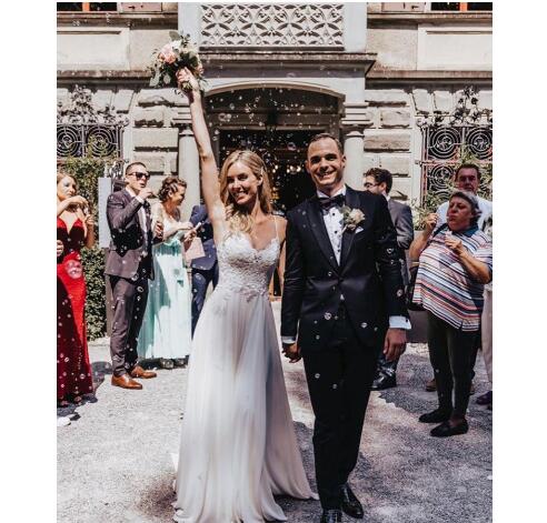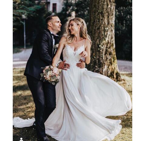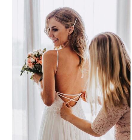 New Boho Wedding Dresses V-neck Spaghetti Straps Sleeveless White Ivory Chiffon Beach Bridal Dress Appliques Backless Vestido De Noiva