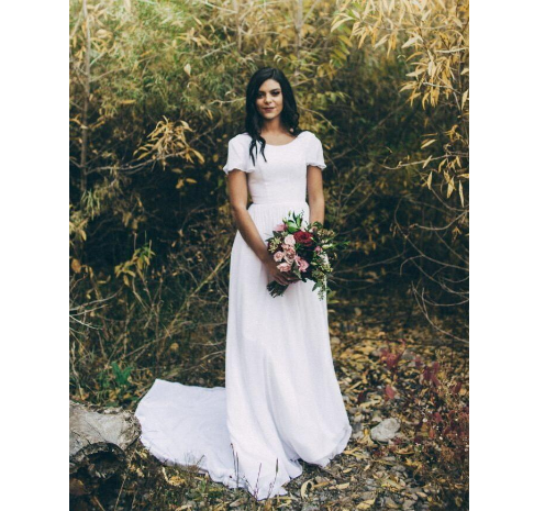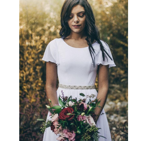 Simple A-line Chiffon Modest Wedding Dresses With Flutter Sleeves Scoop Neck Detachable Crystals Belt Boho Modest Bridal Gowns