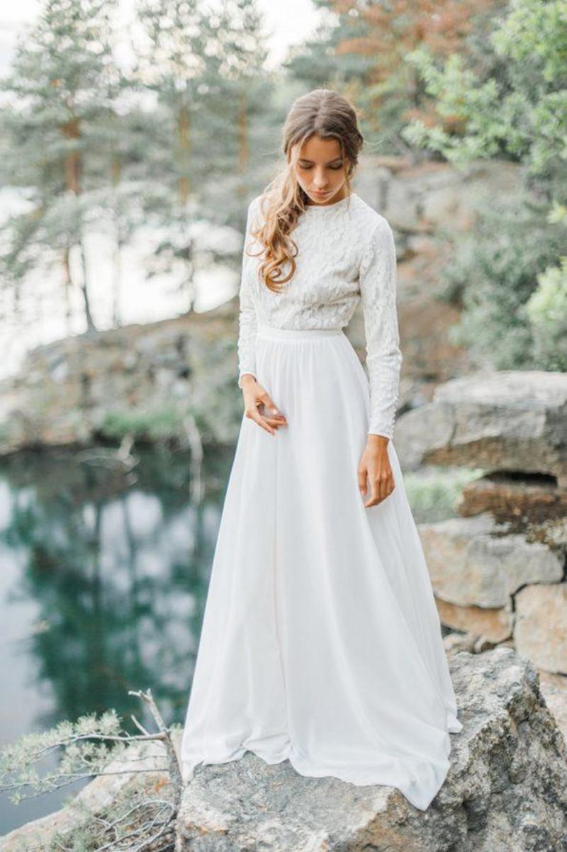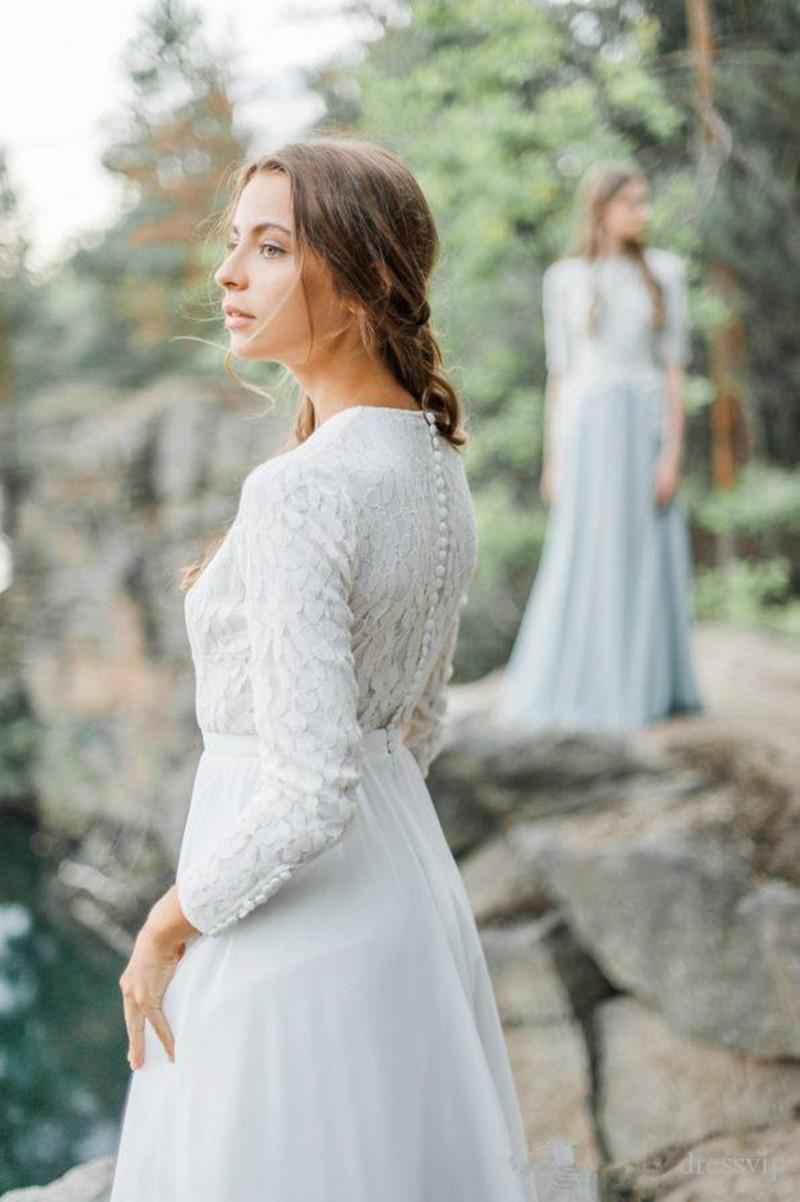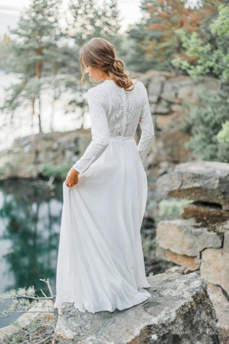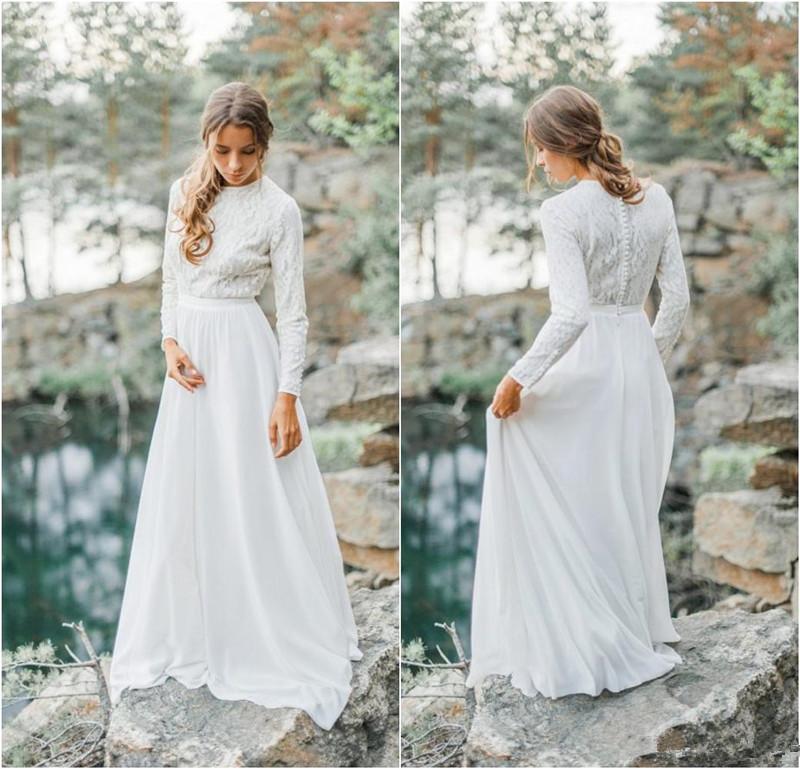 Modest West Country Wedding Dresses A Line Jewel Neck Long Sleeve Bohemian Wedding Dress Custom Made Elegant Vestidos De Novia