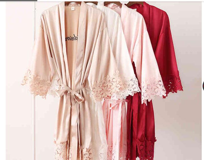 Casual Dresses 1 Pcs Women Robe Lace Bride Bridesmaid Sleepwear Celebrity Party Wedding