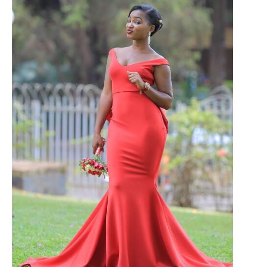 African V Neck Long Bridesmaid Dresses For Wedding Plus Size Mermaid Maid Of Honor Gowns Satin Sweep Train Women Formal