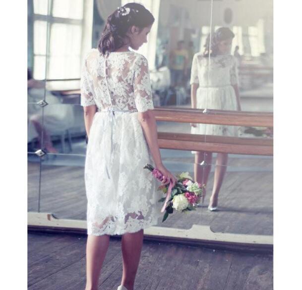 Elegant Short Wedding Dresses With Half Sleeve Sheer Neck Appliques Lace Bridal Gowns Vestido De Novia Little White dresses For Bride