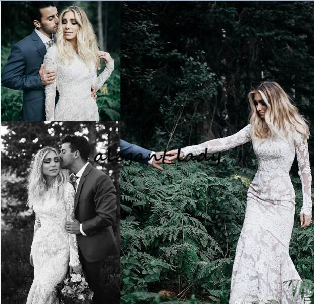 Dramatic Rustic Mermaid Wedding Dresses 2019 Full Lace Vintage Long Sleeve Trumpet Bohemian Country Western Bridal Wedding Gown