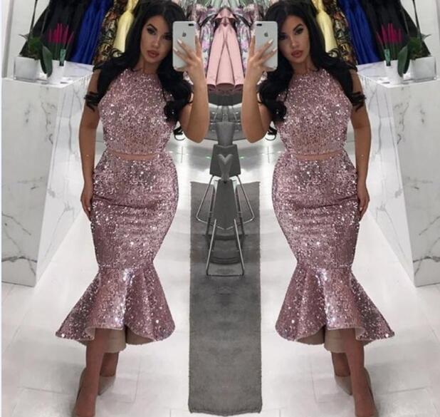Sparkly Bling Two Pieces Sequined Prom Dresses Mermaid Evening Gowns Cocktail Women Formal Party Wear