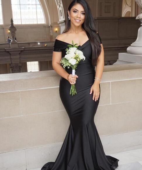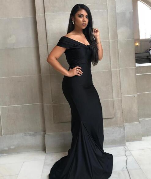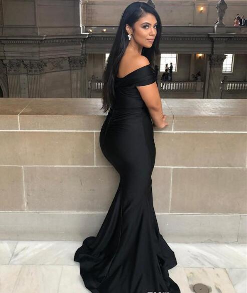 New Black Sheath Prom Evening Formal Dress Party Mermaid Off Shoulder Sweep Train Dresses Custom Made