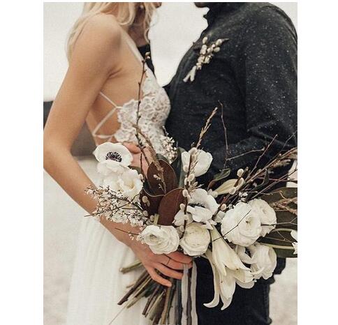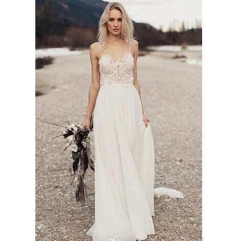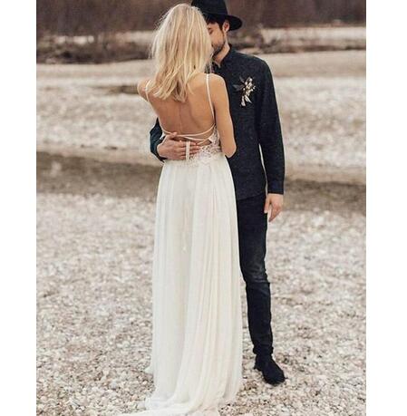 Beach Wedding Dresses Boho Bridal Gowns Spaghetti Backless Sweep Train Chiffon Lace Appliques Robes De Mariée