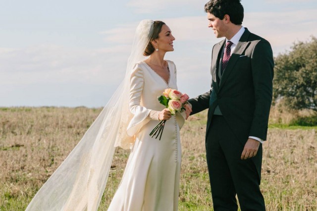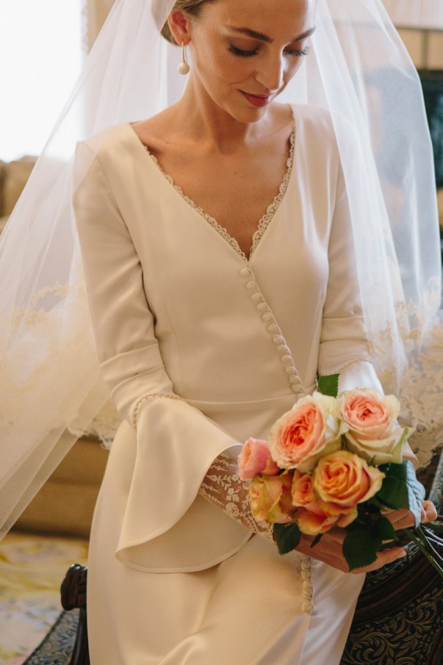 Simple Beach Wedding Dresses Boho Bridal Gowns Sexy Deep V Neck Long Sleeve Covered Button Lace Accents Wedding Dresses Robes De Mariée