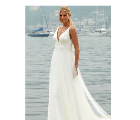 Sexy Bridal Gowns Column Pleats Deep V-Neck With Straps Zipper Chapel Train High Waist Tulle Wedding Dresses