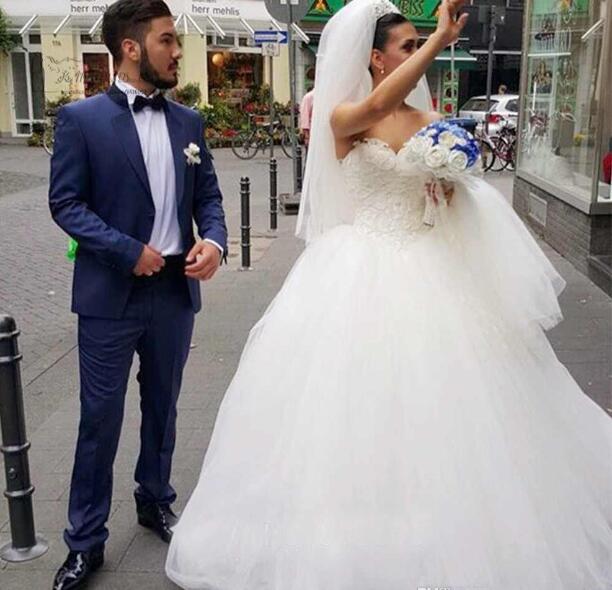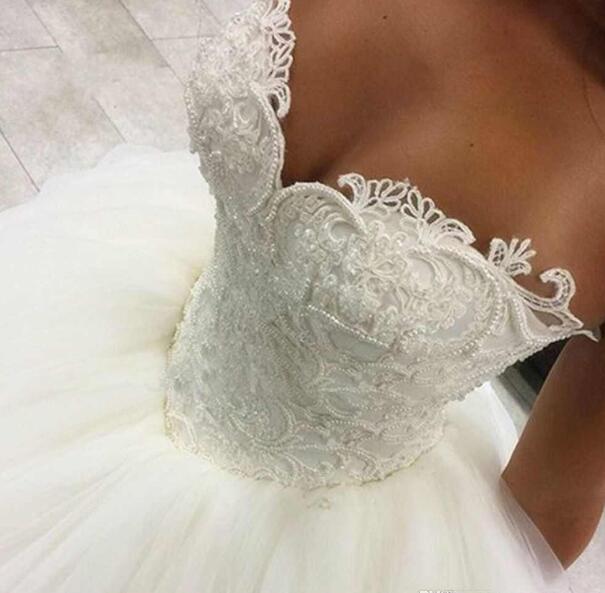 Charming Pearl Beaded Wedding dresses Sweetheart Tulle Floor Length Vestido De Nova custom Made Country Gown For Bridal