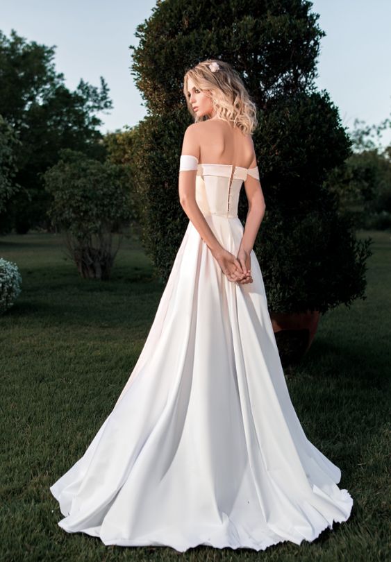 Simple A Line Wedding Dresses Off the Shoulder Lace Up Bridal Gowns