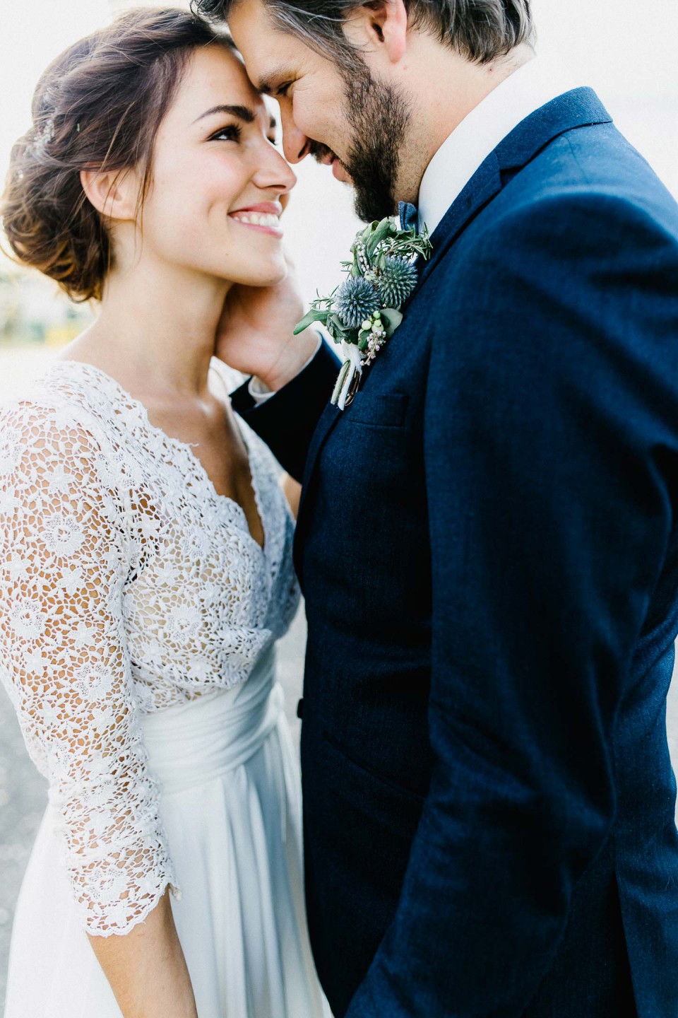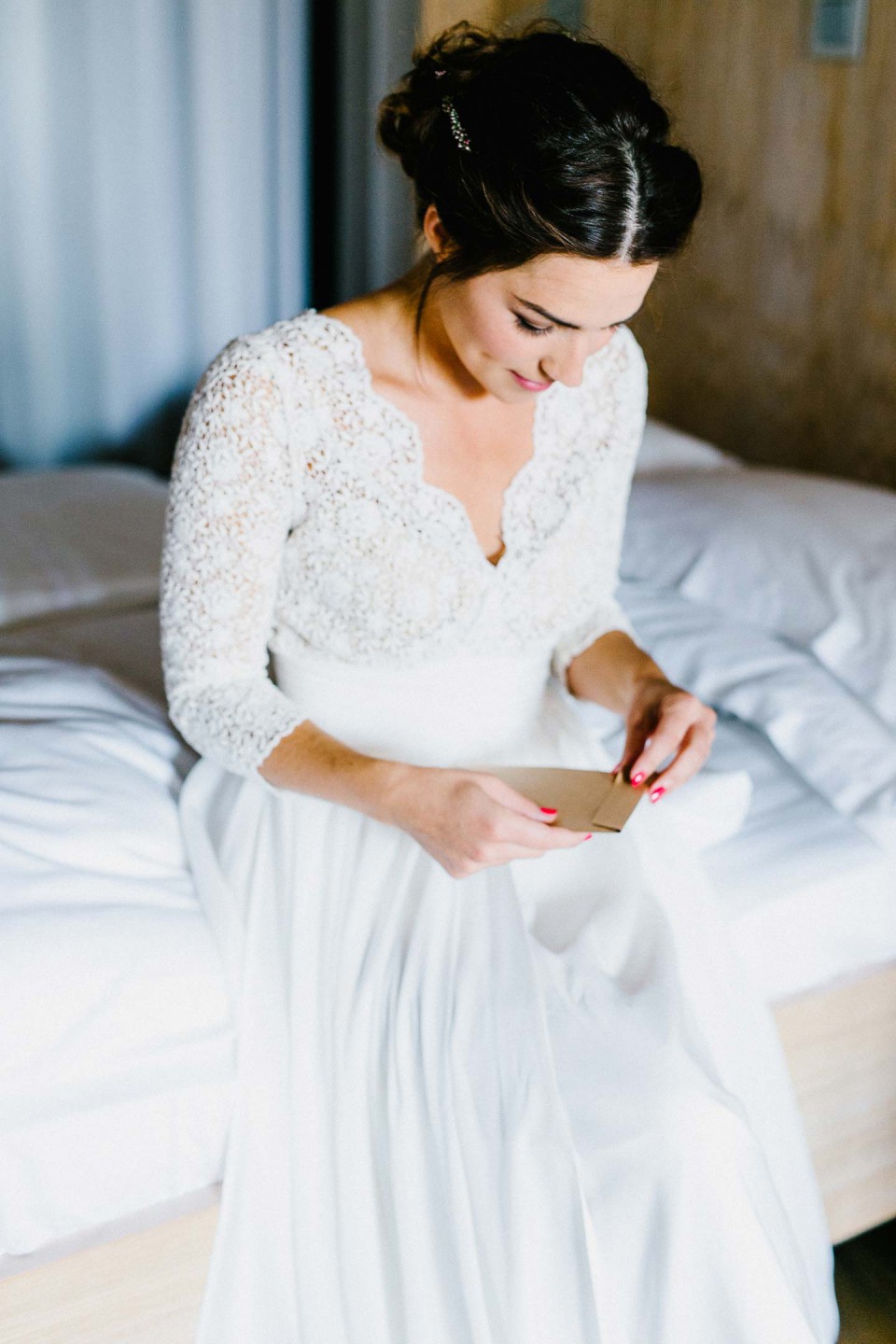 Simple A Line Wedding Dresses 3/4 Long Sleeve Delicate Lace Chiffon Bridal Gowns