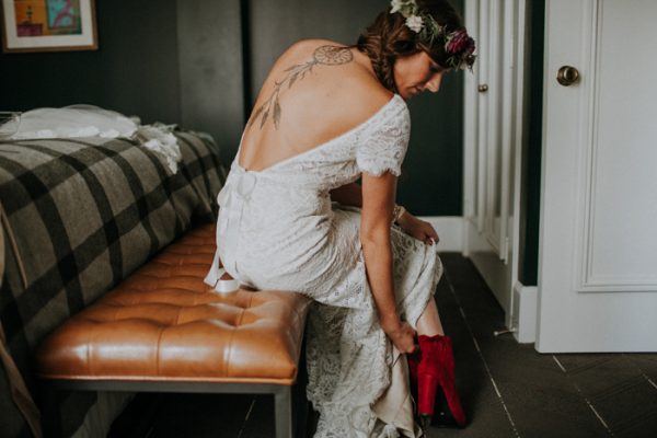 Bohemian Mermaid Wedding Dresses Crew Neck Short Sleeve Delicate Lace Backless Bridal Gowns