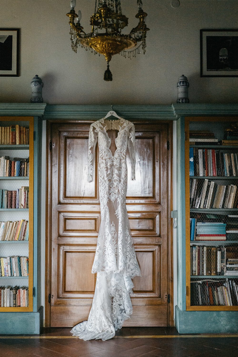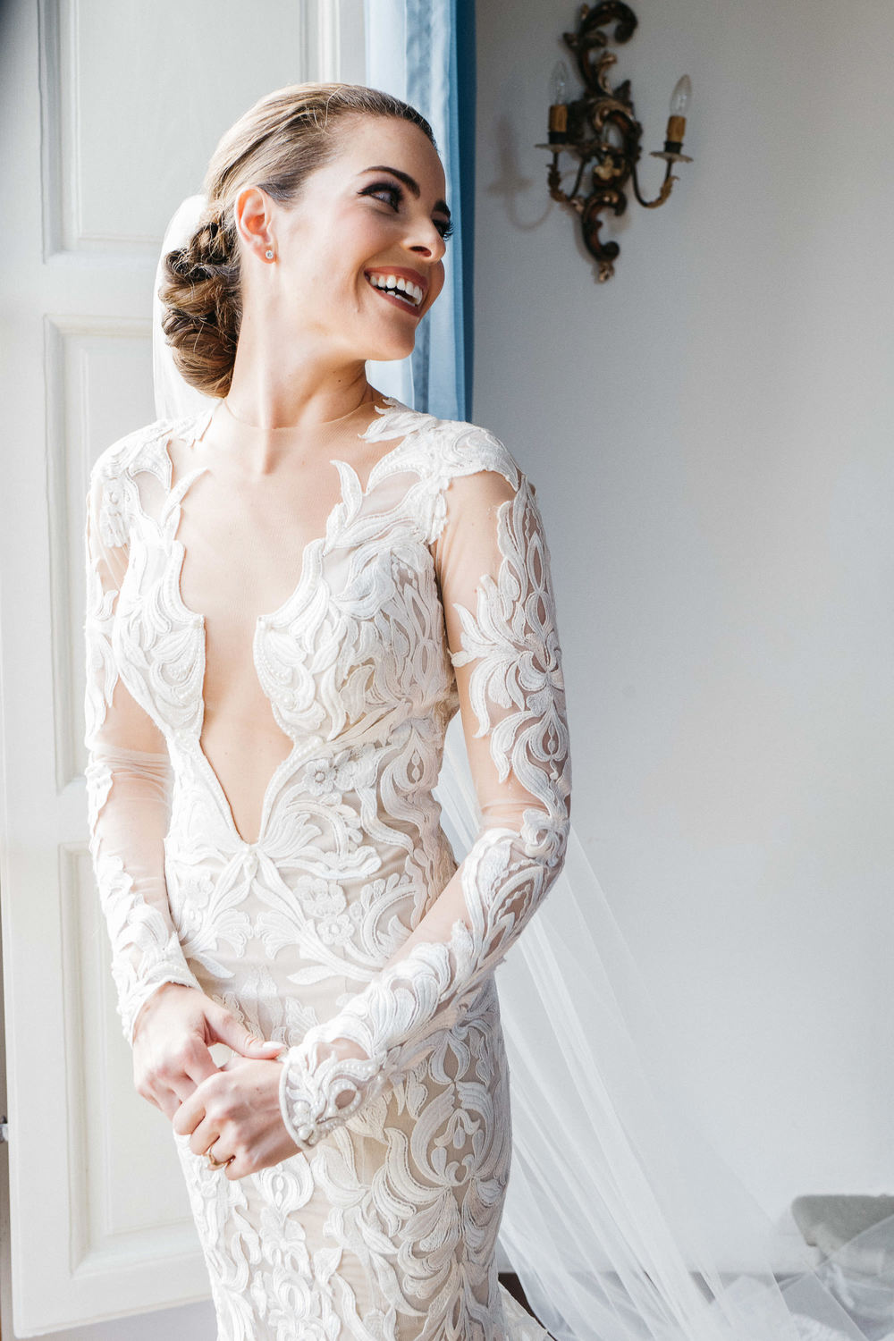 Romantic Tuscan Villa Wedding Dresses Sheer Crew Neck Long Sleeve Delicate Lace Keyhole Back Bridal Gowns