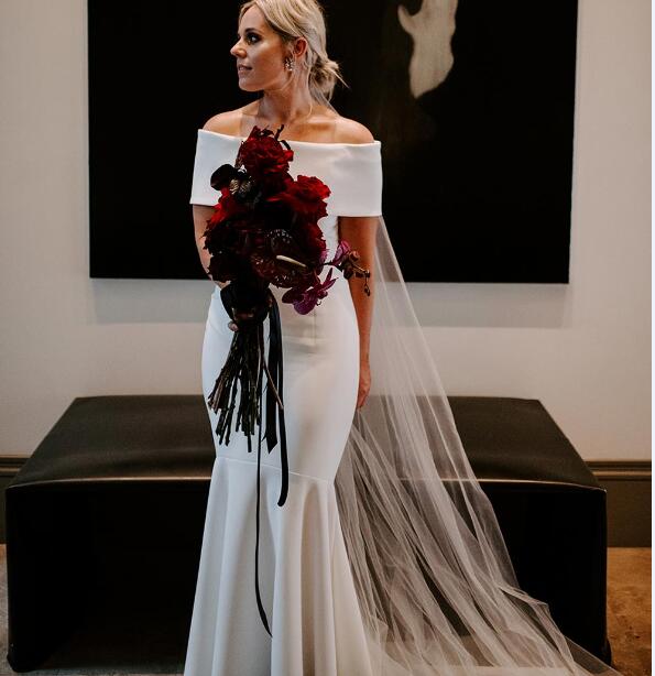 Simple Mermaid Wedding Dresses Off the Shoulder Covered Button Sleeveless Bridal Gowns