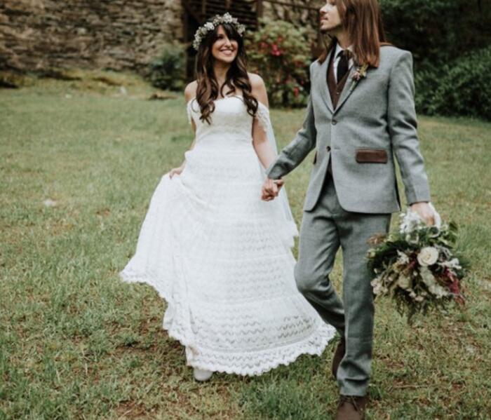 Glamorous A Line Boho Beach Wedding Dresses Off the Shoulder Unique Lace Bridal Gowns