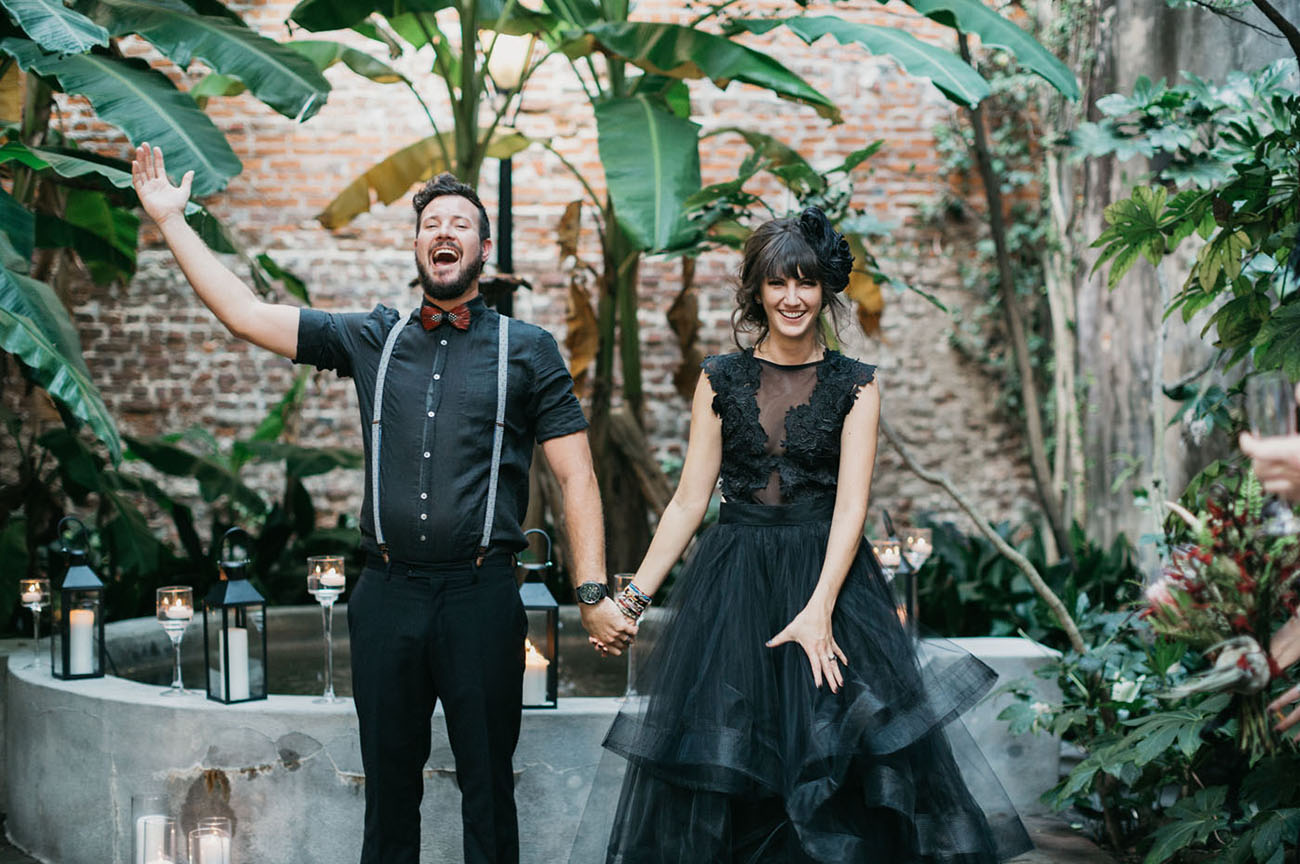 Romantic Ball Gown Black Gothic Wedding Dresses Sheer Crew Neck Lace Appliques Keyhole Back Bridal Gowns