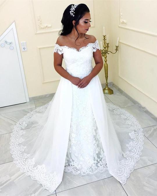White Off Shoulder Sweetheart Lace Wedding Dresses Bride Gown