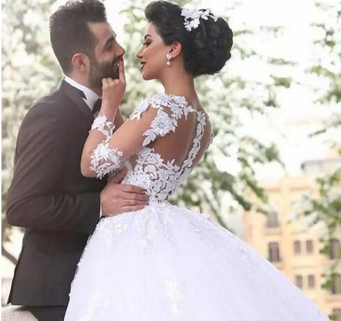 Sheer Long Sleeve Wedding Dresses Sexy Illusion Lace Appliques Ball Gowns Bridal Gowns Cheap Wedding Dress Custom Made