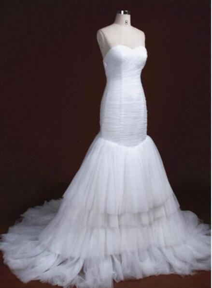 Ruched Pleated Mermaid Wedding Dresses Sweetheart Sleeveless Soft Tulle Tiered Skirt Trumpet Bridal Gowns Custom Made High Quality
