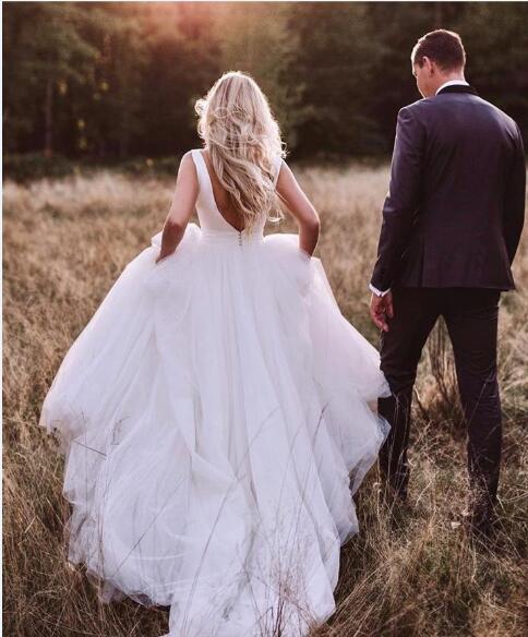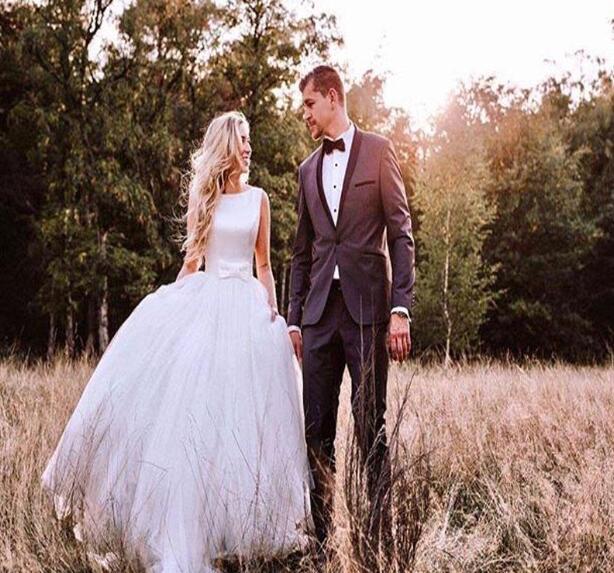 New Arrival Simple Scoop Neckline Sleeveless Satin Cheap Western Wedding Dress With Bow Belt Open Back Covered Button A-line Bridal Gowns