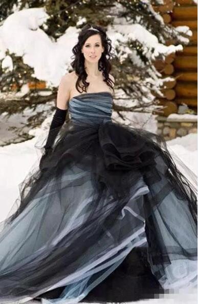 Black Gothic Ball Gown Wedding Dresses 2019 Princess Tulle Strapless Sleeveless Sweep Train Vintage Puffy Bridal Gowns Tiers Tulle Skirt