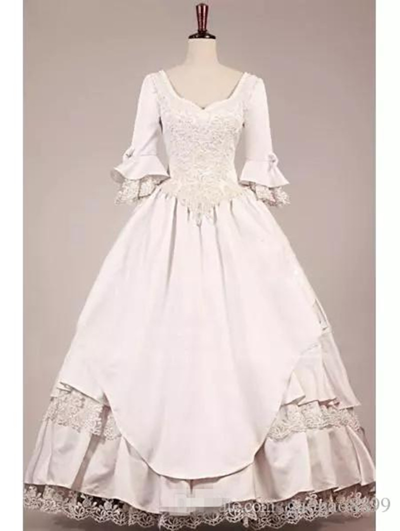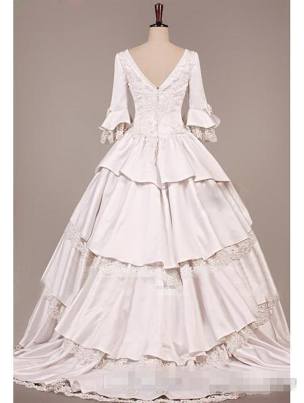 Hippie VICTORIAN WEDDING DRESS new style Vintage 3/4 long sleeves Wedding Dresses ball gown Lace Bridal Ball Gowns Dresses