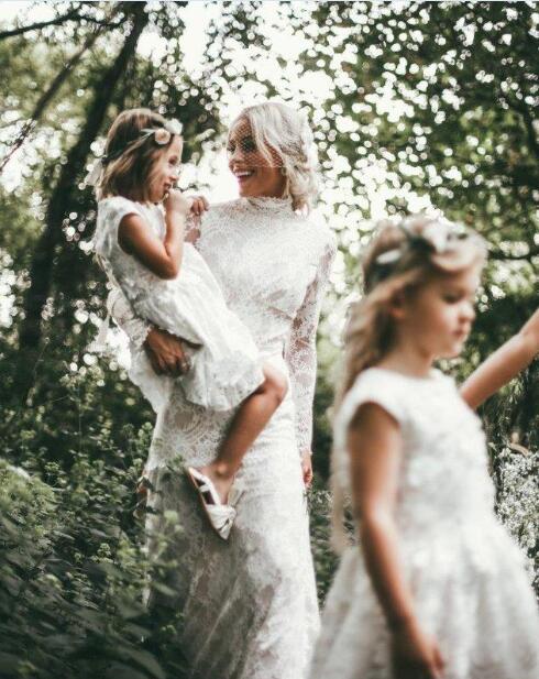Country Mermaid Wedding Dresses High Neck Lace Backless Long Sleeve Sweep Train Bridal Gowns Plus Size Robe De Mariée