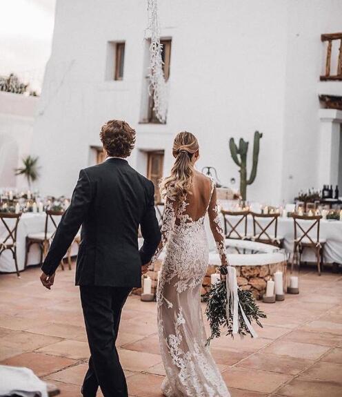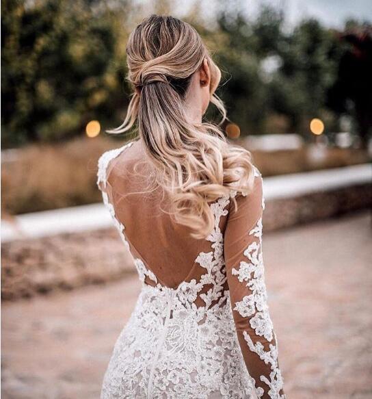 New Scoop Illusion Mermaid Wedding Dresses Long Sleeves Appliques Sexy Bridal Wedding Gowns Sweep Train Robe De Mariee Bride Dresses