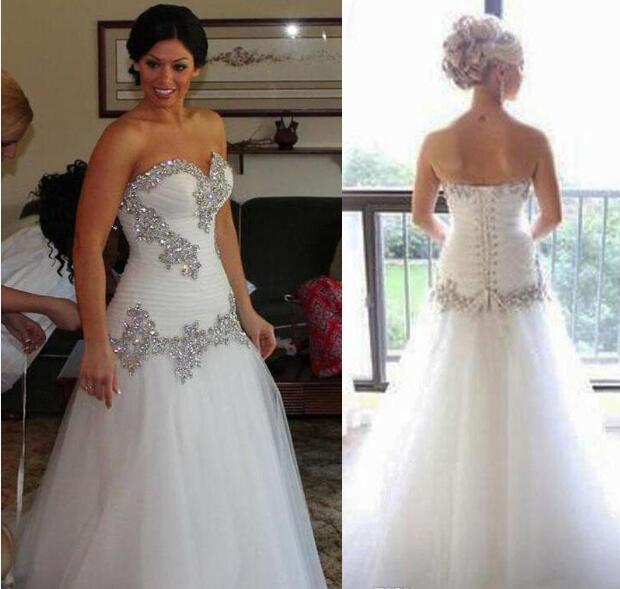 Elegant Crystal Sheer Wedding Formal Maxi Dresses Hand Make Bridal Long Classical Gowns Free Shipping Custom Made Fat Little
