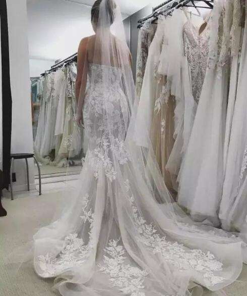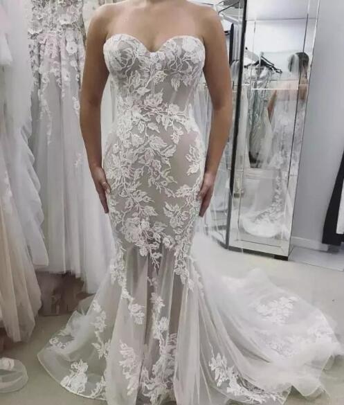 Mermaid Wedding Dresses Sweetheart Lace Appliques Sweep Train Custom Made Country Wedding Dress With Veil Plus Size Bridal Gowns