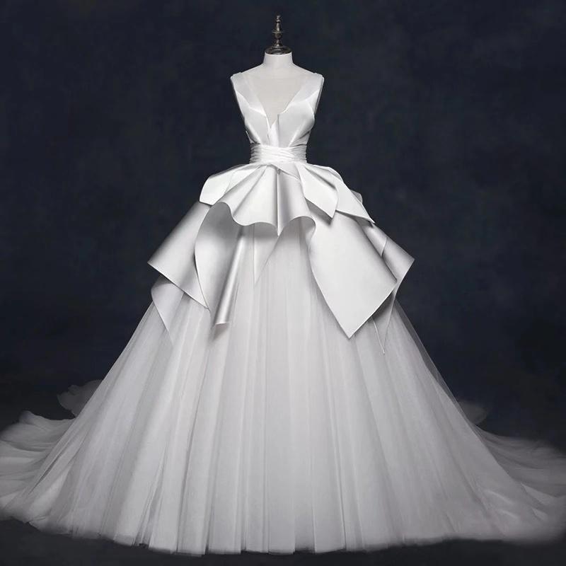 Wedding dress new bride vintage satin palace princess fantasy simple show thin autumn and winter long tail