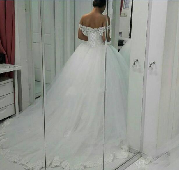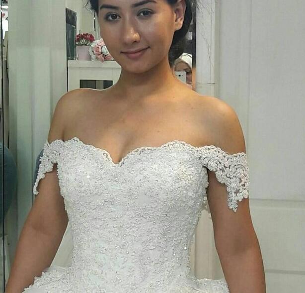 Off Shoulder Ball Gowns Princess Lace Wedding Dresses Sweetheart Appliques with Beaded Wedding Gowns Puffy Skirt Lace-Up Back Bride Dress