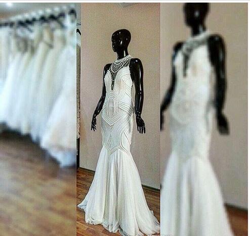 Sexy Mermaid Wedding Dresses White Chiffon High Neck Sleeveless with Pearls Open Illusion Back Sweep Train Custom Made Bridal Gowns