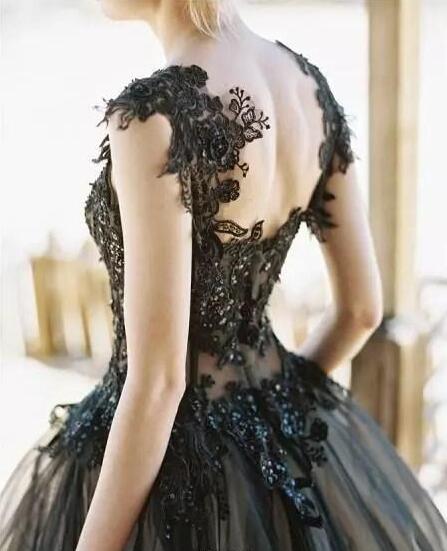 Vintage Elegant Black Tulle Lace Applique Gothic A-line Wedding Dresses Cheap Gothic Beaded Backless Long Bridal Gowns Custom